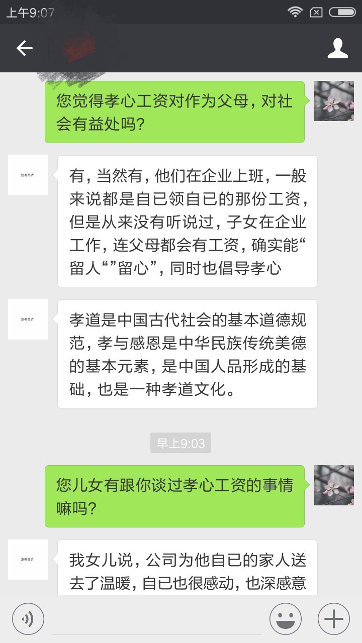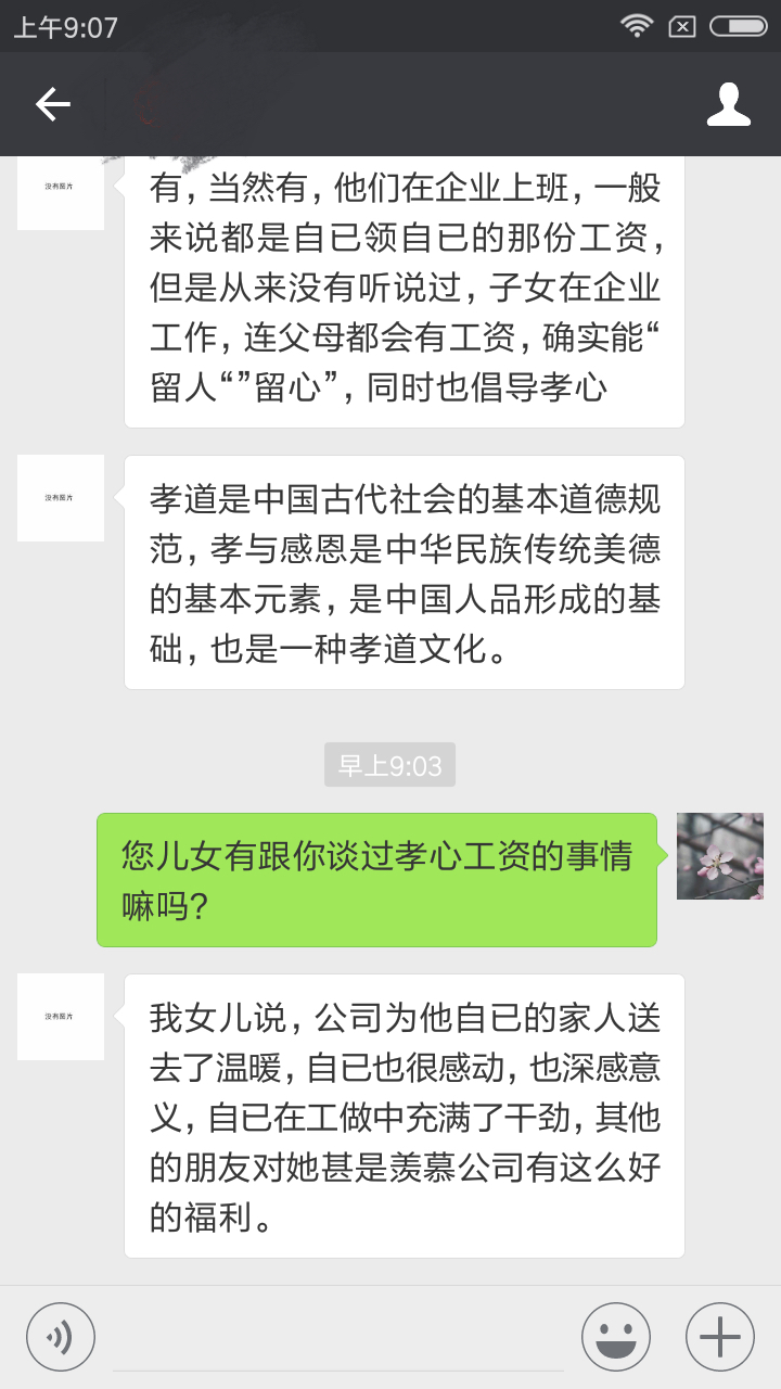 【员工1】:我和我父母都很赞成,也想孝心工资的方案能够继续下去!