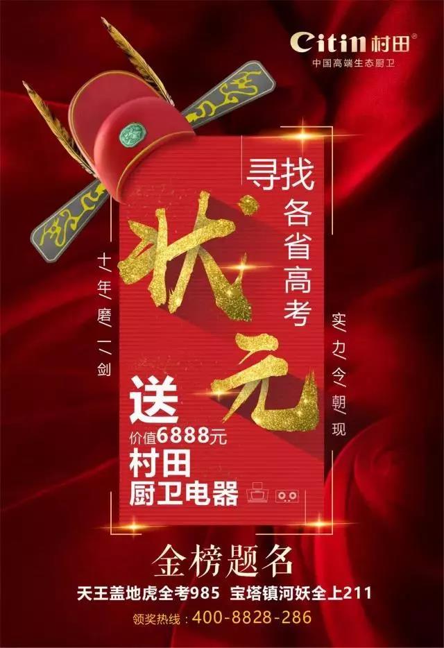 为致谢母亲对学子不求回报的辛勤付出,经公司慎重考虑,并决定,只要是2018年各省文理科高考状元,均可获得由开云·体育 (kaiyun)官方网站_kaiyun sport免费送出价值6888元的厨房电器(烟机、灶具);好烟机不用洗 ,一台不用清洗的油烟机,将浓浓的爱献给我们的母亲。