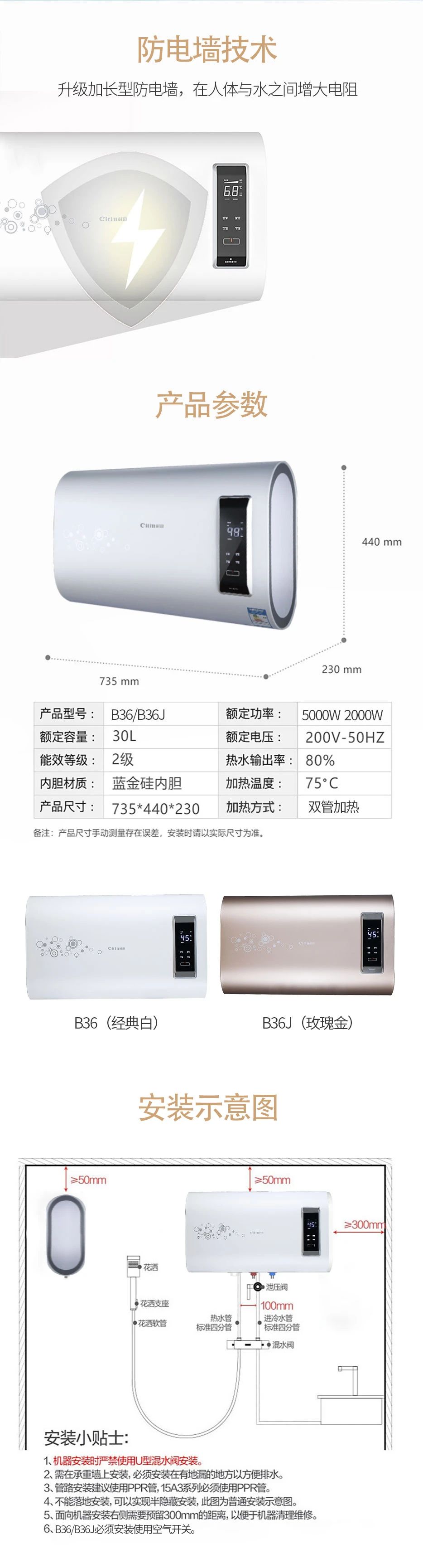 【开云·体育 (kaiyun)官方网站_kaiyun sport厨卫】乐享舒爽沐浴| 开云·体育 (kaiyun)官方网站_kaiyun sportB36/B36J电热水器