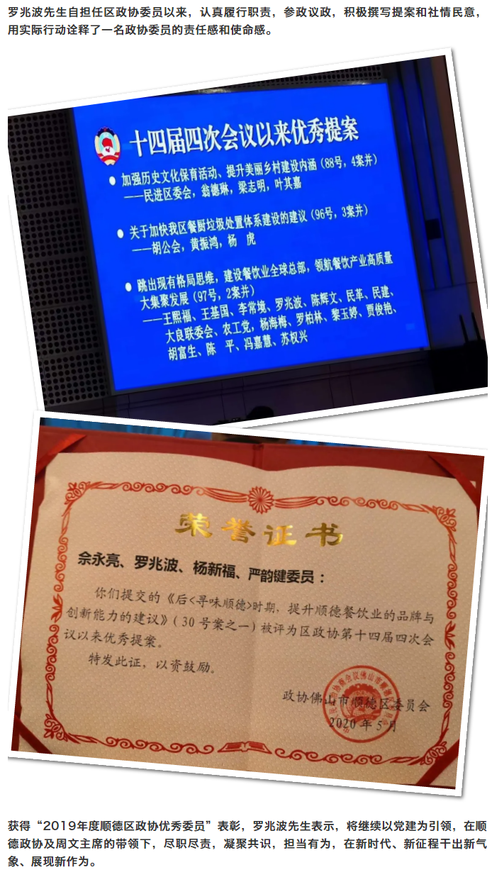 【开云·体育 (kaiyun)官方网站_kaiyun sport厨卫】担当有为丨罗兆波董事长荣获“2019年度顺德区政协优秀委员”称号