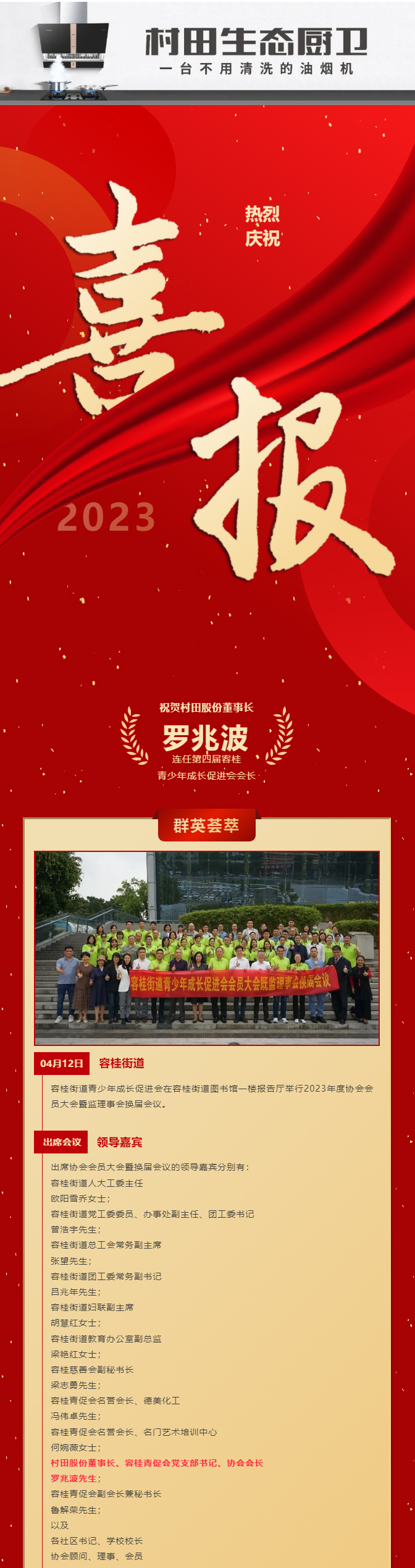 【开云·体育 (kaiyun)官方网站_kaiyun sport厨卫】热烈祝贺开云·体育 (kaiyun)官方网站_kaiyun sport股份董事长罗兆波先生连任第四届容桂青少年成长促进会会长
